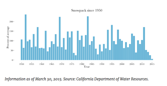 But what if the wet ones stop coming? Then what. We are getting a look at just such a scenario now with a 6% of average snowpack following on 3 very, very dry ones. Few ever thought such a situation was in the cards.