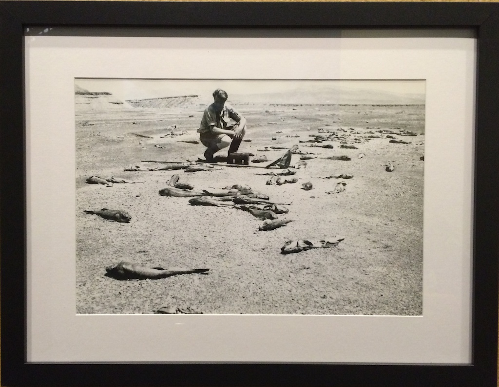 Stranded fish when Truckee River flows are diverted to farms – historic photo from UNR Knowledge Center display