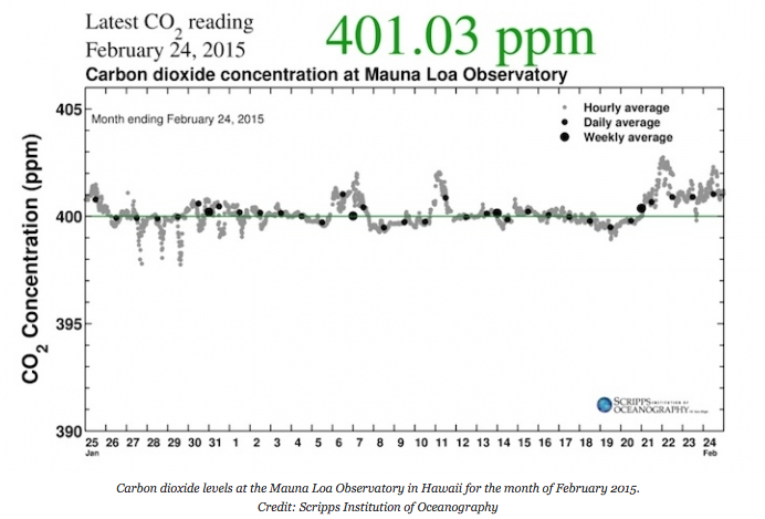 ClimateCentral.org published this graphic from Scripps Institute of Oceanography showing Carbon Dioxide above 400 ppm.