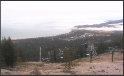 Heavenly Valley Ski webcam screen capture on morning of 10/28/16. Southeast shore of Lake Tahoe from ski run above Stateline, NV.