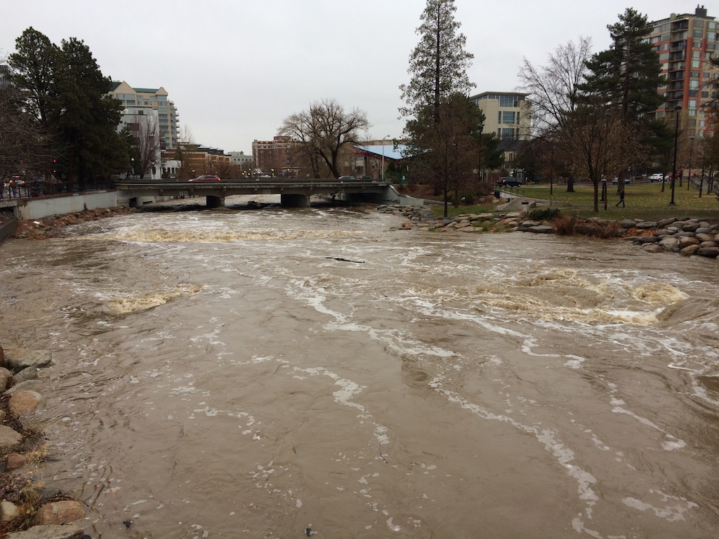 Now that the rain has ended (hopefully, more snow and rain is on the way), the river is dropping rapidly. At 10 pm on Sunday, Dec 11 the flow rate through Reno is less than 1,500 CFS.