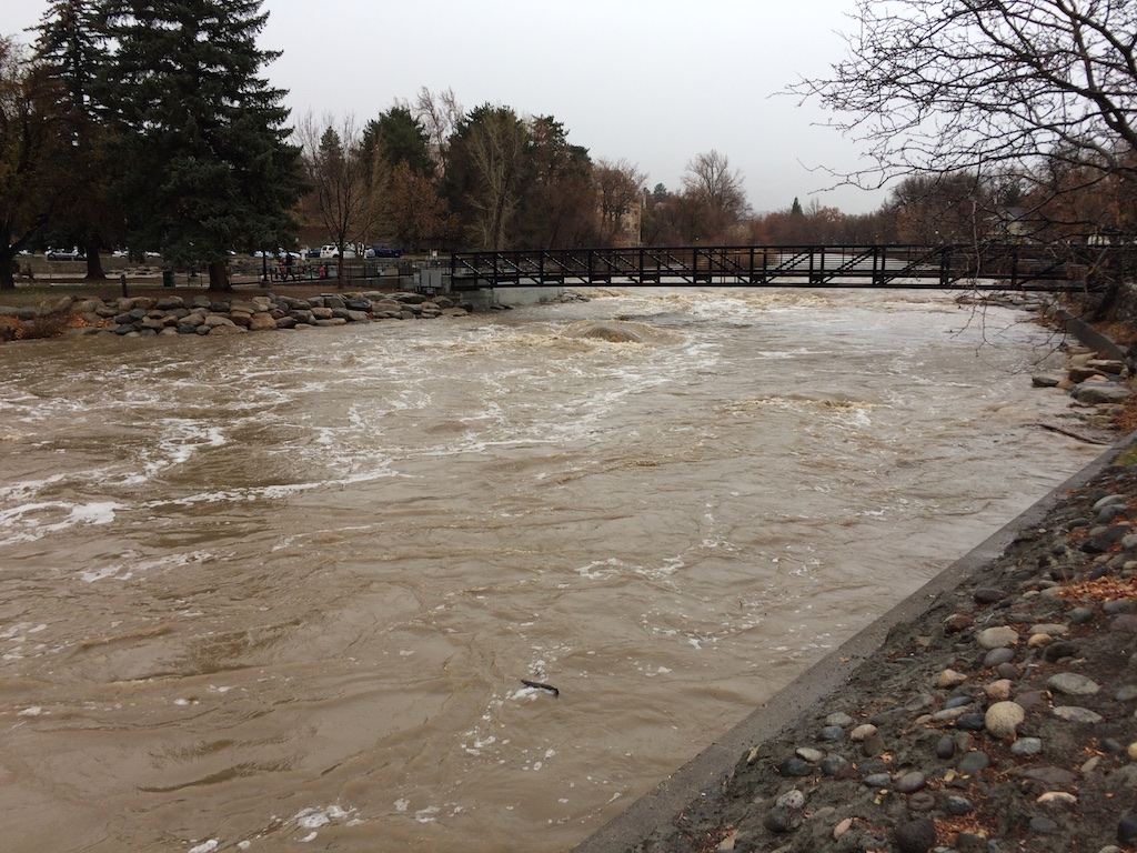 The “atmospheric river” resulted in rain throughout the central Sierra and the Reno area for most of Saturday, Dec 10, 2016. Rain was heavy in the mountains with snow confined to higher elevations. Consequently, runoff from the storm quickly entered the Truckee River below Lake Tahoe and sent flows approaching 5,000 cubic-feet-per-second through Reno and Sparks. That flow rate amounts to 2.2 million gallons of water per hour. The Truckee River hasn’t seen this rate of flow since 2012.