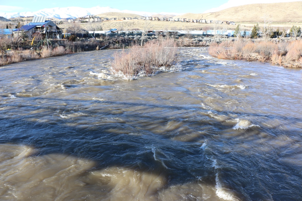 The dramatic rise in Tahoe’s water surface elevation hasn’t resulted in significant flows to the Truckee River from Lake Tahoe, however. In fact, very little water is being released into the Truckee River with flows near Tahoe City, California staying close to 50 cubic-feet-per-second (CFS). Compare this to yesterday’s flow in the Truckee River at Reno of 4,500 CFS. Water in the Truckee River is coming from direct runoff from rain and melting snow into tributary streams entering the Truckee River below Lake Tahoe. Lake Tahoe has a dam (built by the US Bureau of Reclamation over 100 years ago) at Tahoe City that controls the release of water into the Truckee River. Under natural conditions flows from Lake Tahoe would be much higher. It is easy to forget that dams control the amount of flow along the river’s entire course. The biggest diversion on the Truckee River is at Derby Dam between Sparks and Wadsworth. (Want to know more about tributaries to the Truckee? Click here.)