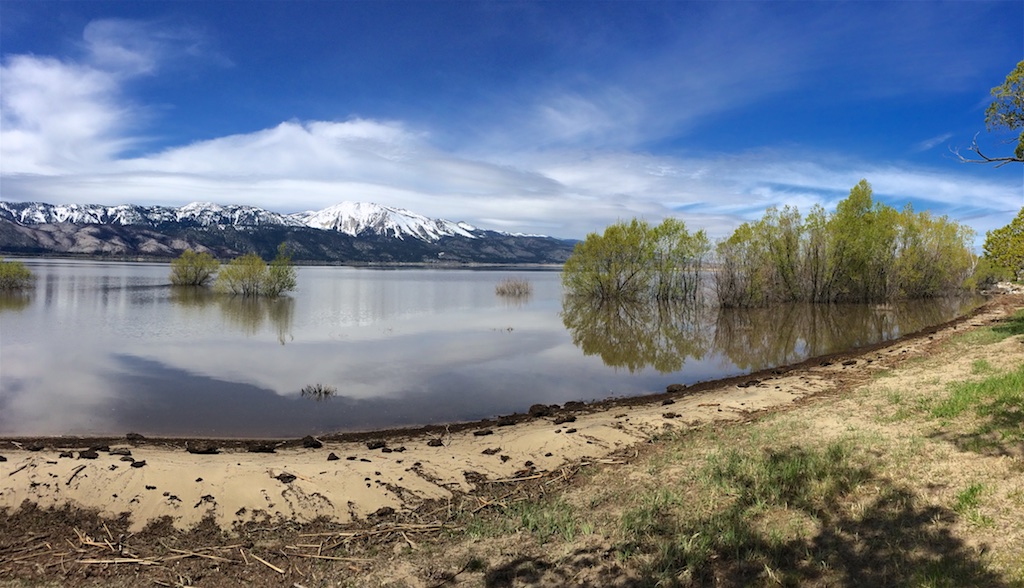 Washoe Lake is on both sides of the US 395 freeway as of today. Given that last fall, there remained just a large water puddle in the middle of the larger south end, the turnaround is remarkable.