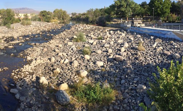 Truckee River nearly depleted of its flow at the last water intake for the TMWA in Sparks as seen in Spring 2015