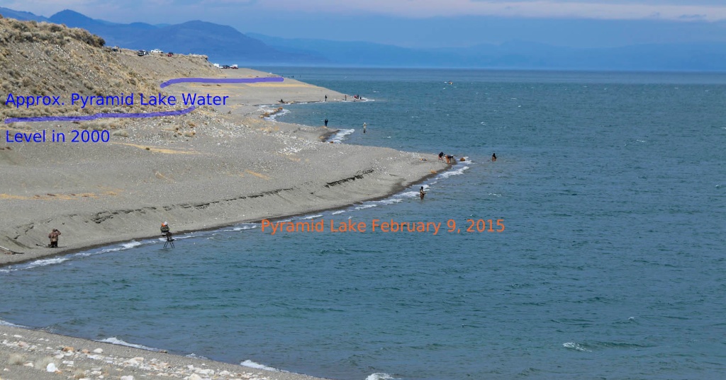 Pyramid Lake offers ample proof of an extended drought with steeply declining lake levels since 2000.